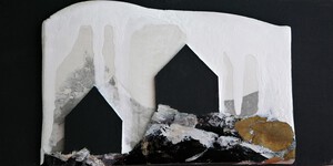 2022mdf blokje, acrylverf, papier, ijzerdraad, karton